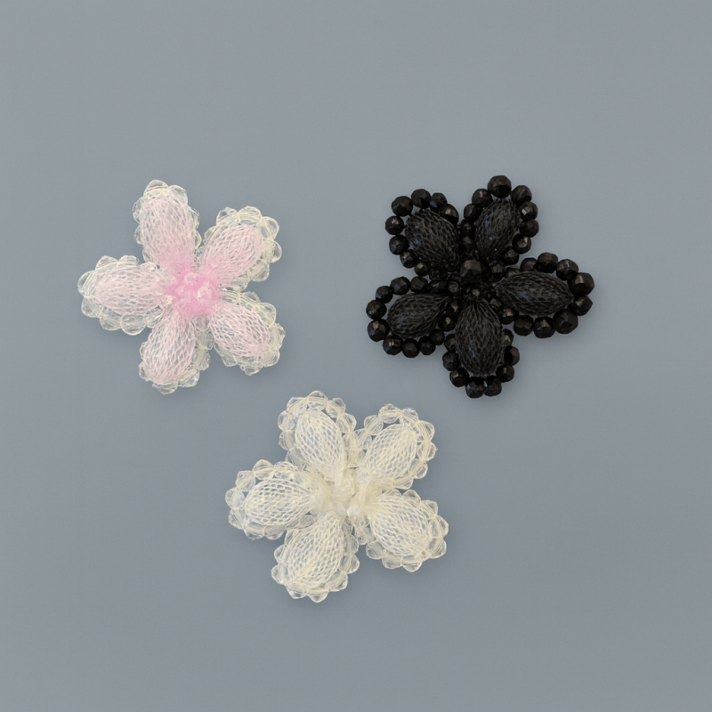 Delicate pearl blossom with an elegant shimmer – ideal as a statement for size S, combinable with other modules for sizes M, L and XL.
