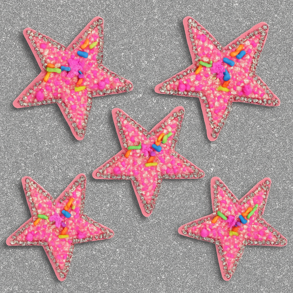 • Design: Rosa Stern mit Glitzersteinen & bunten Sprinkles